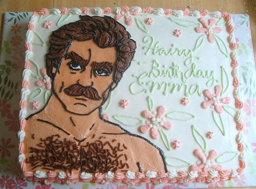 OH my, I laughed real hard when I saw this picture. Was this a real cake you were in the presence of? How wonderful. As for cake ideas...I am in love with cake, but can't make a good one to save my life. My mother makes a fantastic Texas Sheet cake that doesn't stick around the house for long. I'm not sure if this is her exact recipe, but it's pretty darn close: