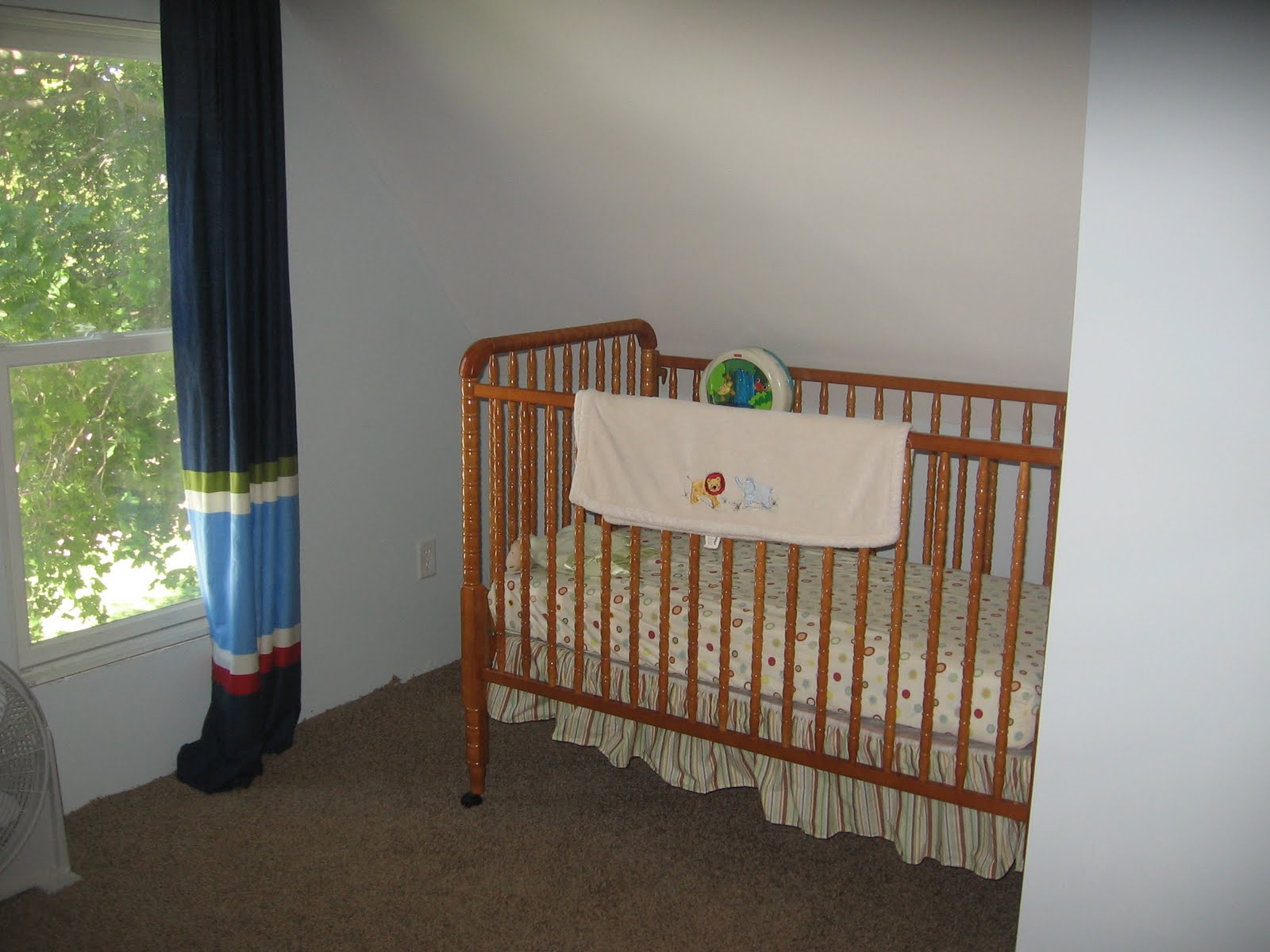 It's a good sized room, and we'll most likely put the next baby in here with him, once Baby #4 outgrows the bassinet anyways. By the way, this room has always been a bedroom and not much was done structurally besides moving the door over a little bit and making the closet bigger.