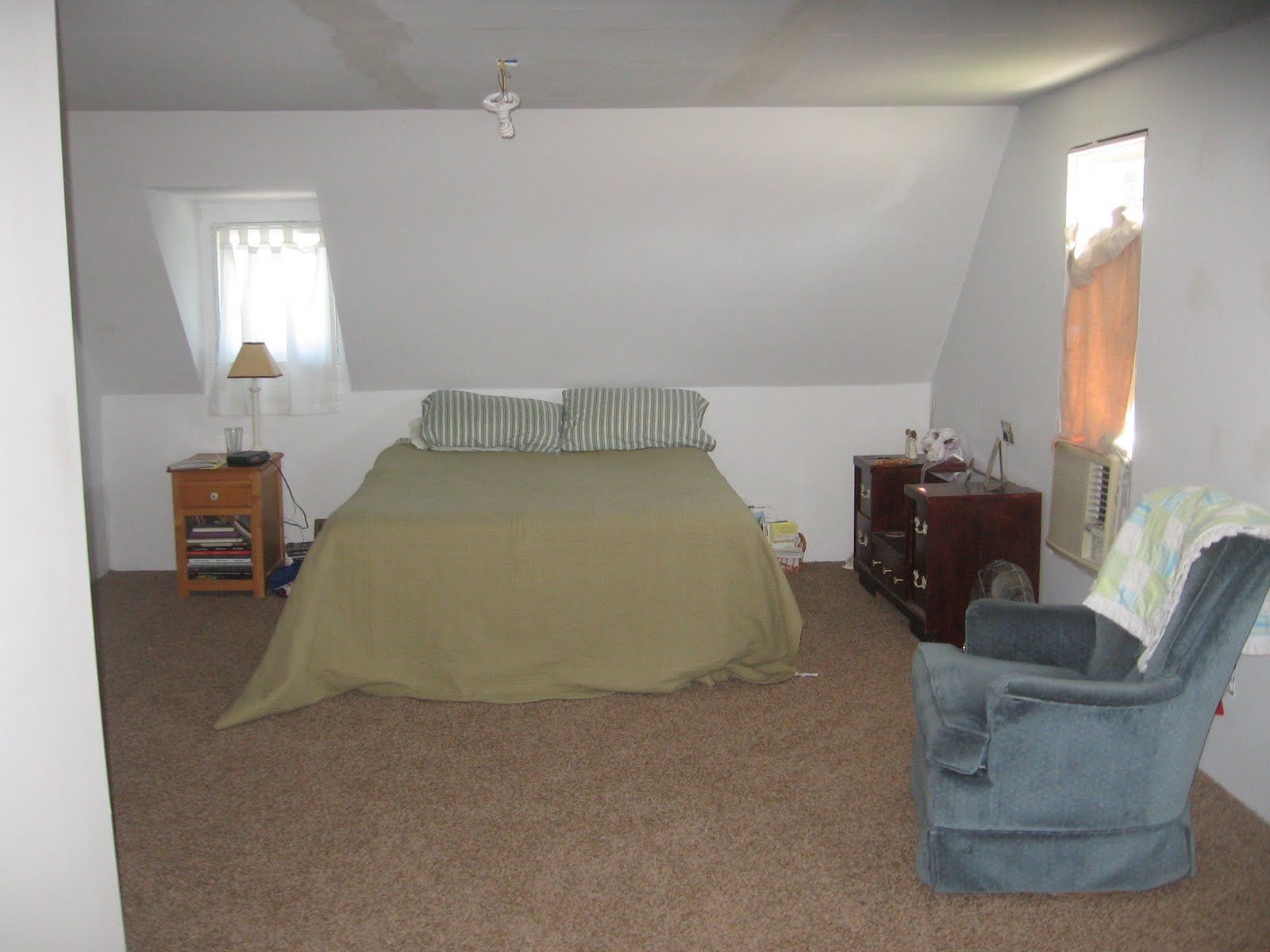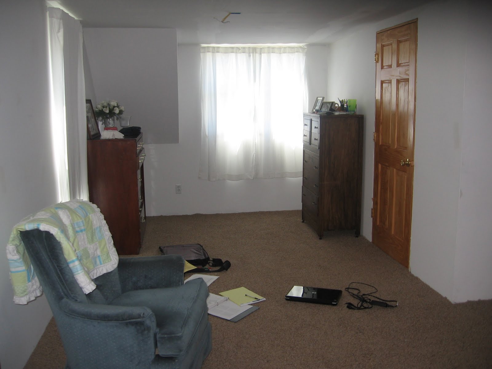 It's wonderful not having our bed on the far side of the living room any more! Whew! You can see the computer desk peeking out from behind the blue wall on the right. That has opened up the dining room tremendously.