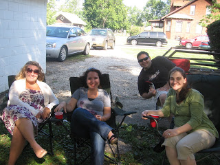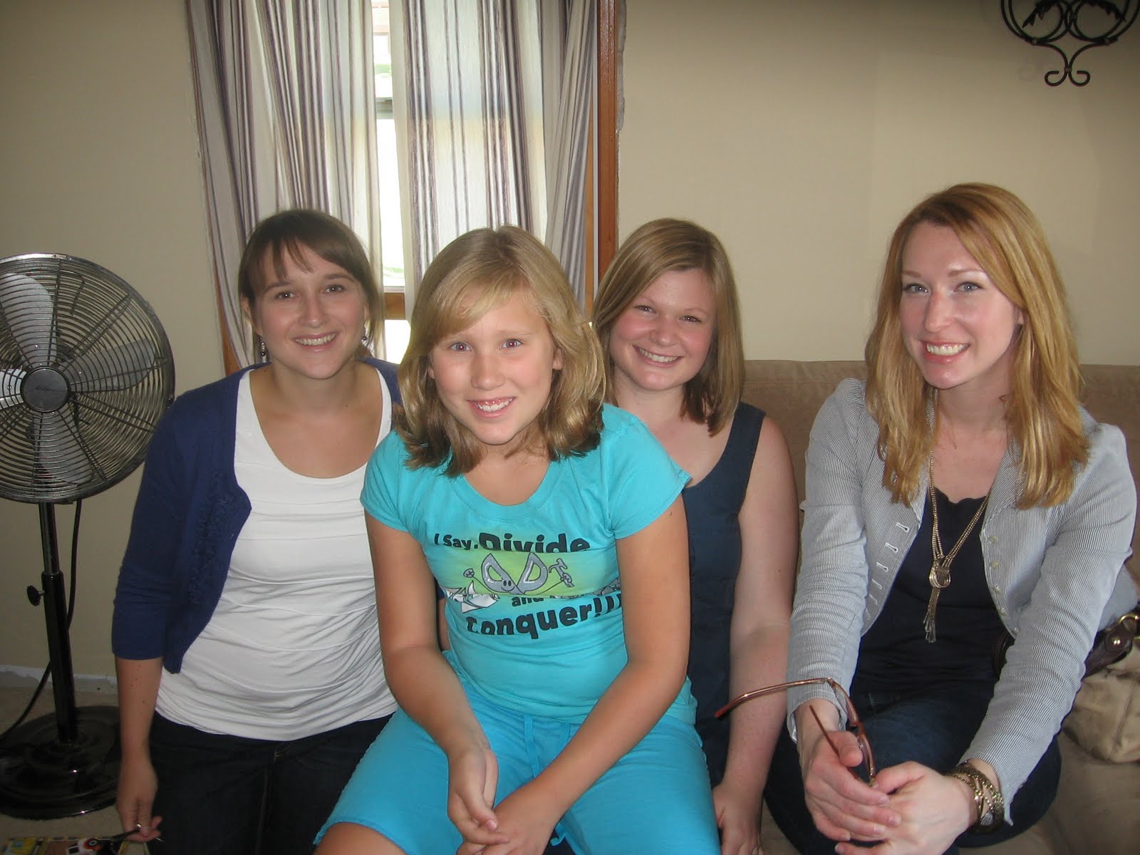 (this is not a good picture of me - bad angle - but look how pretty V and L are. And L is having one heck of a good hair day!)