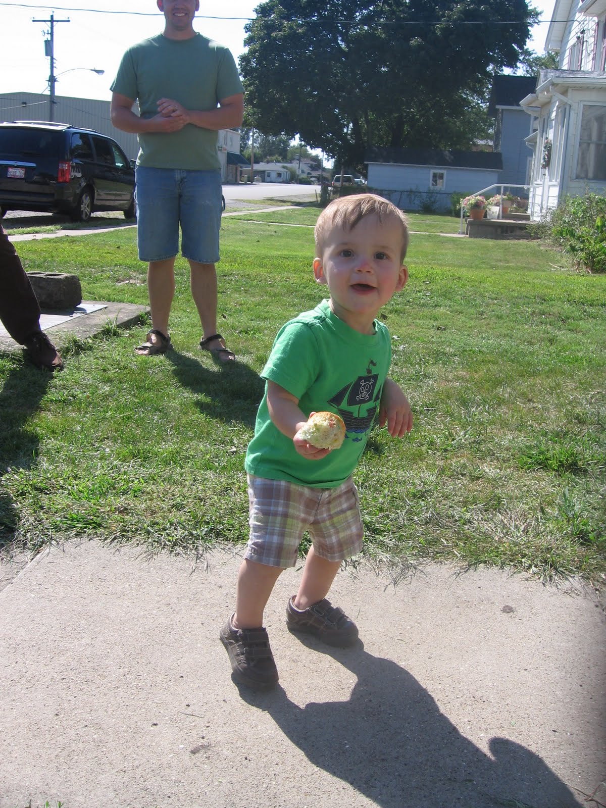 Okay, really he found the cupcake, half eaten by a 2 year old friend, picked it up and ate it.