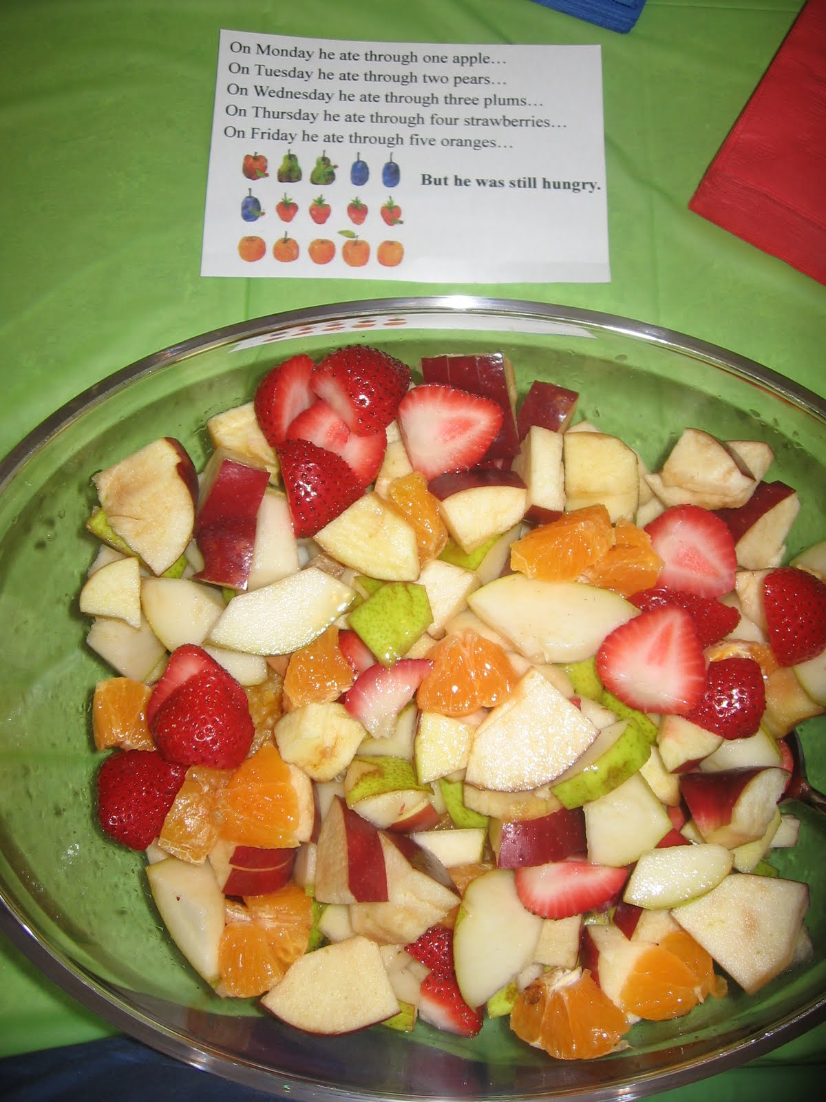 To pull off the theme I served all the food the Very Hungry Caterpillar ate through.