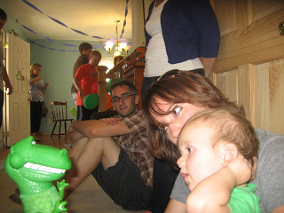 Opening presents didn't excite Ben too much. He ripped open about 4, and then there was a wave of little kids who wanted to help. When this dinosaur was opened there was a collective gasp of awesomeness by all people under the age of 9. Ben then sat with his lovely godmother and played with the cool new toy.