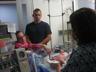 Other promising news: He's been doing a great job with oral therapy and is a great sucker! Yay! Also, he is doing really well with his feeding schedule and digesting my milk. Yay! And his gag reflex is getting stronger and more consistent! They are even going to introduce a bottle to see how he does with it. And very soon (like tomorrow maybe) we will get to start doing non-nutritive sucking after I pump. His eyes are responsive, too, and all this combined means his brain stem is probably in good shape. Yay! Yay! Yay! Please pray for continued success in feedings.
