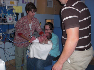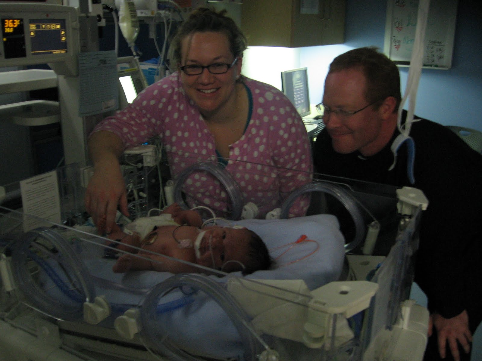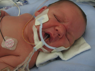 James: Nothing new to report. In many ways he's doing very well. The attempt to feed him with a bottle did not go well. Will you please pray that when they try tomorrow it will? His suck is pretty good, but his gag reflex isn't great and so milk goes into his lungs instead of his tummy. His doctor said that he's made so many improvements in the last 7 days that it's okay for him to rest and take some things slow, but I'd like him to come home in 2 weeks on a bottle, not with a feeding tube surgically placed into his stomach.