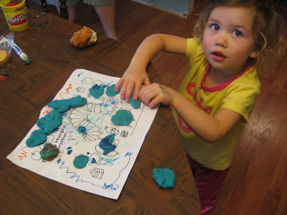 L helped me make it - she dispersed the glue, cut the grass, and colored where I had (4 times) specifically told her not to. She went to time out for disobeying.