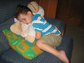 | Ben got sent to time out. When I went in to talk with him about it he was asleep. He'd literally cried himself to sleep. |