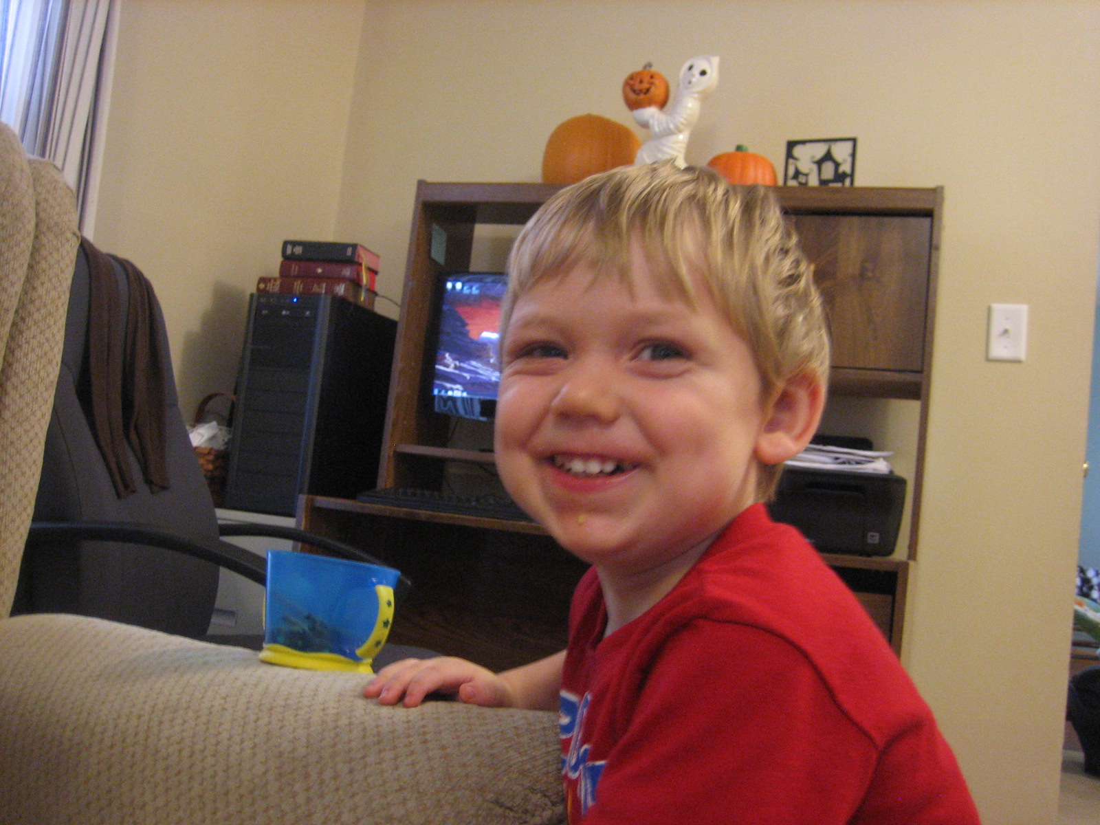 | No, L is not too engrossed with Martha Speaks to even look at the camera. Just look at the cute baby! |