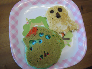 Monster and ghost pancakes for breakfast.