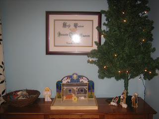 Oh! - and where's our tree? Well, that won't be put up until Gaudete Sunday, the 3rd Sunday of Advent. That's also the day we plug in the outside lights and begin listening to Christmas music. We have found that it's a great way to help us all Rejoice (Gaudete is Latin for 'rejoice') and celebrate that our Savior is coming!