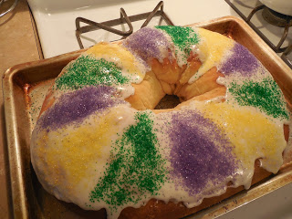 Also, I make a King Cake for the kids (this year's version even outwardly looked like a King Cake) but I put a ring in it instead of the baby. Less toxic. Less creepy. Still fun.
