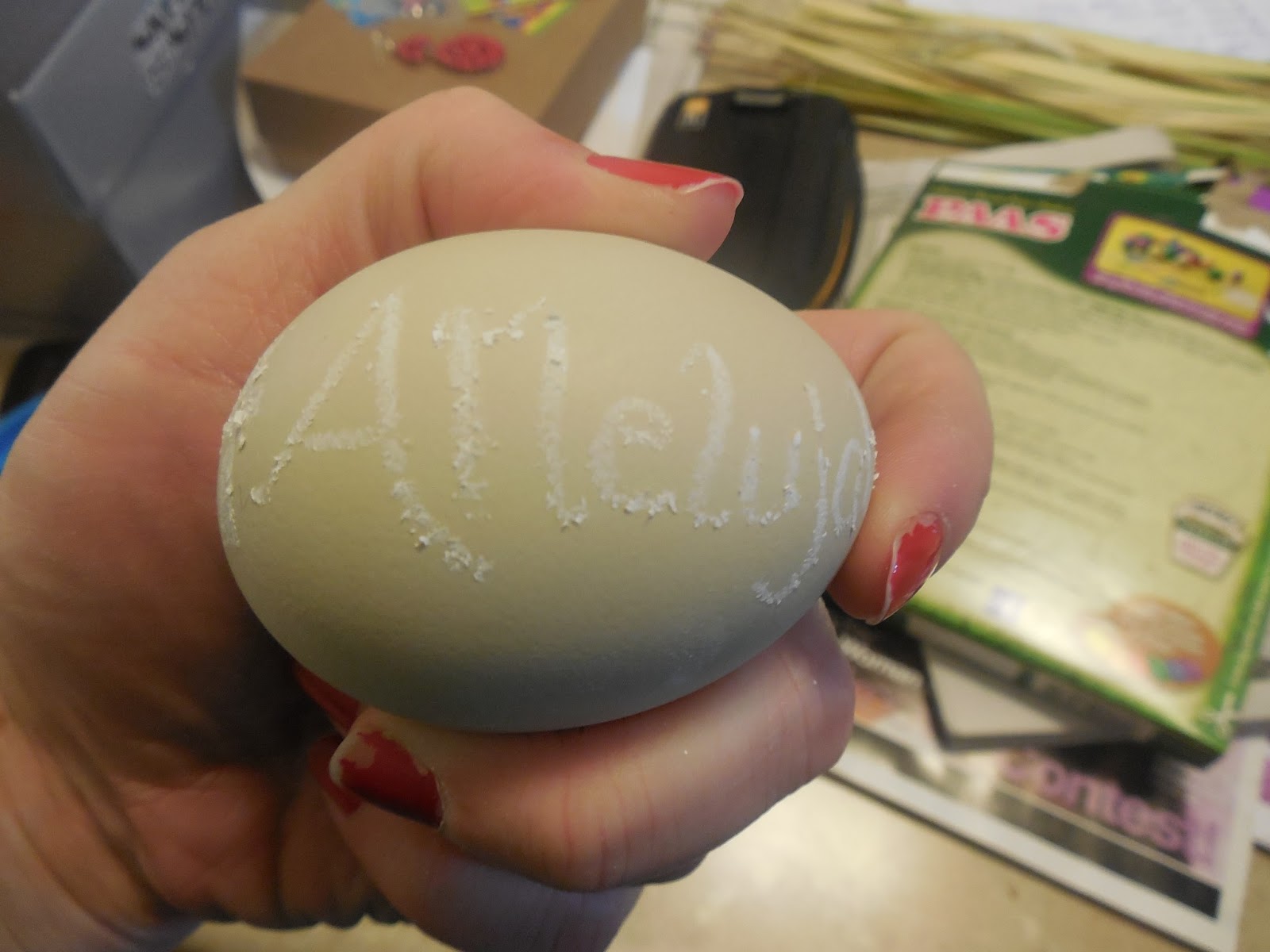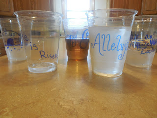 Instead of having people write their names on cups I decorated each one with some Easter-y expression or picture. My mom was the only one who said she liked it, but I thought it was neat.