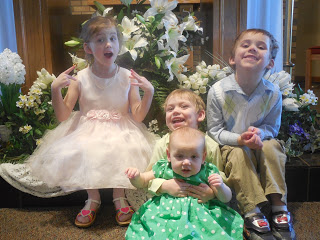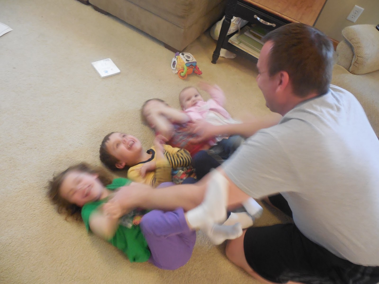 On Holy Saturday Travis had a track meet (he's a coach) but as soon as he got home he lined up the kids and tickled them. It's what happens almost every night - they beg for it.