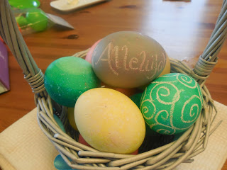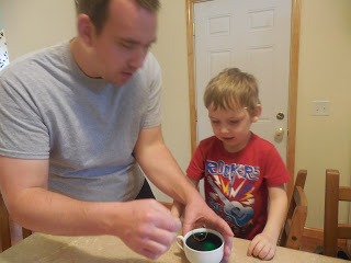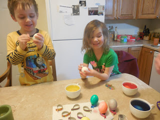 Then we dyed eggs. I don't have the virtue to do it on my own so we wait for Daddy to do such things.