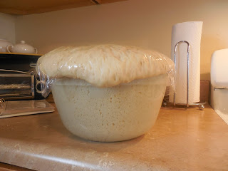 I volunteered to make dinner rolls for the meal. I used my mom's cinnamon roll recipe, making one dozen cinnamon rolls for Easter morning's breakfast and 2 dozen dinner rolls.