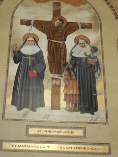 6 - Let's go back to Sacred Heart Church, shall we. I took a bunch of pictures of how beautiful it is, but one of the things I think is most awesome is that the side walls have huge frescoes of modern saints.