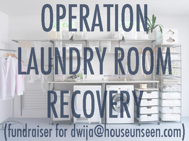 Cari at Clan Donaldson is hosting a fundraiser to at least get a plumber to the house or at best to hire a contractor to remodel the laundry like a one-room version of Extreme Makeover: Home Edition. But without Ty Pennington, whose absence could be seen as a good or a bad thing, depending on who you are and what you think of guys with soul patches and megaphones.