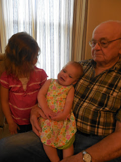 Here's the birthday girl with her great grandpa and big sister.