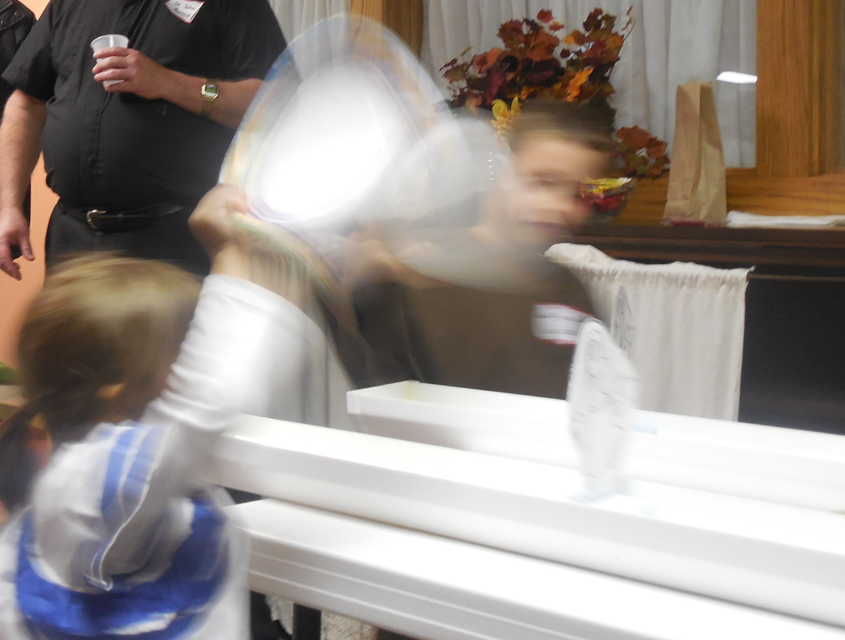 The kids would then use paper plates as fans to race the floating Jesus down the gutters and the first to get him to Peter won.
