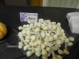 (Our parish is St. Luke, which is why I made them his relics. These are so good and so easy to make - albeit time-consuming. The best part was if they broke or didn't look "perfect" it didn't matter - they're supposed to be old bones!)