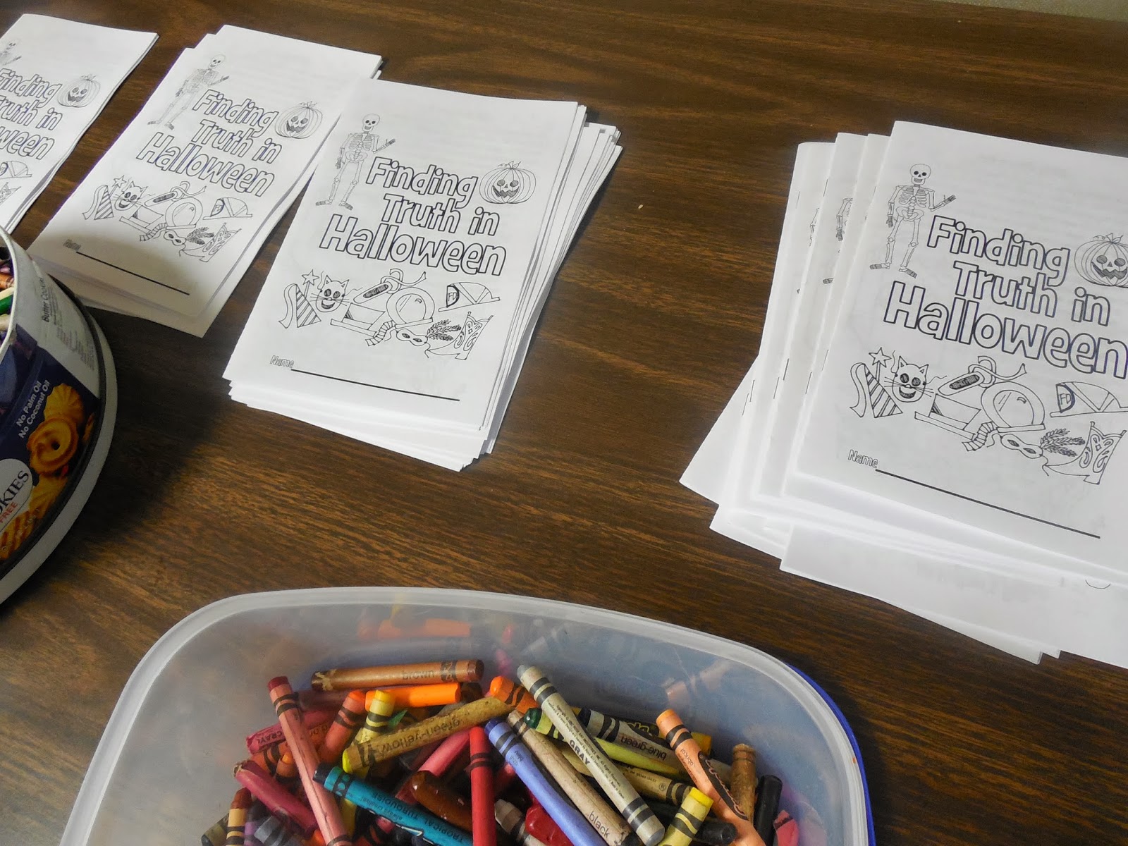 First up, kids grabbed a brown lunch bag and wrote their names on it and decorated it however they wanted. They also grabbed one of the "Finding Truth in Halloween" books.