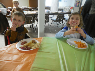 Once all the kids who wanted to had taken the stage we all prayed the Litany of the Saints. I had written the basics on the board and then we made sure to invoke every saint who was "present" with us that evening. It was really neat to see everyone pray together that way - the little kids so excited when "their" name was called out and the parents engaged as well.