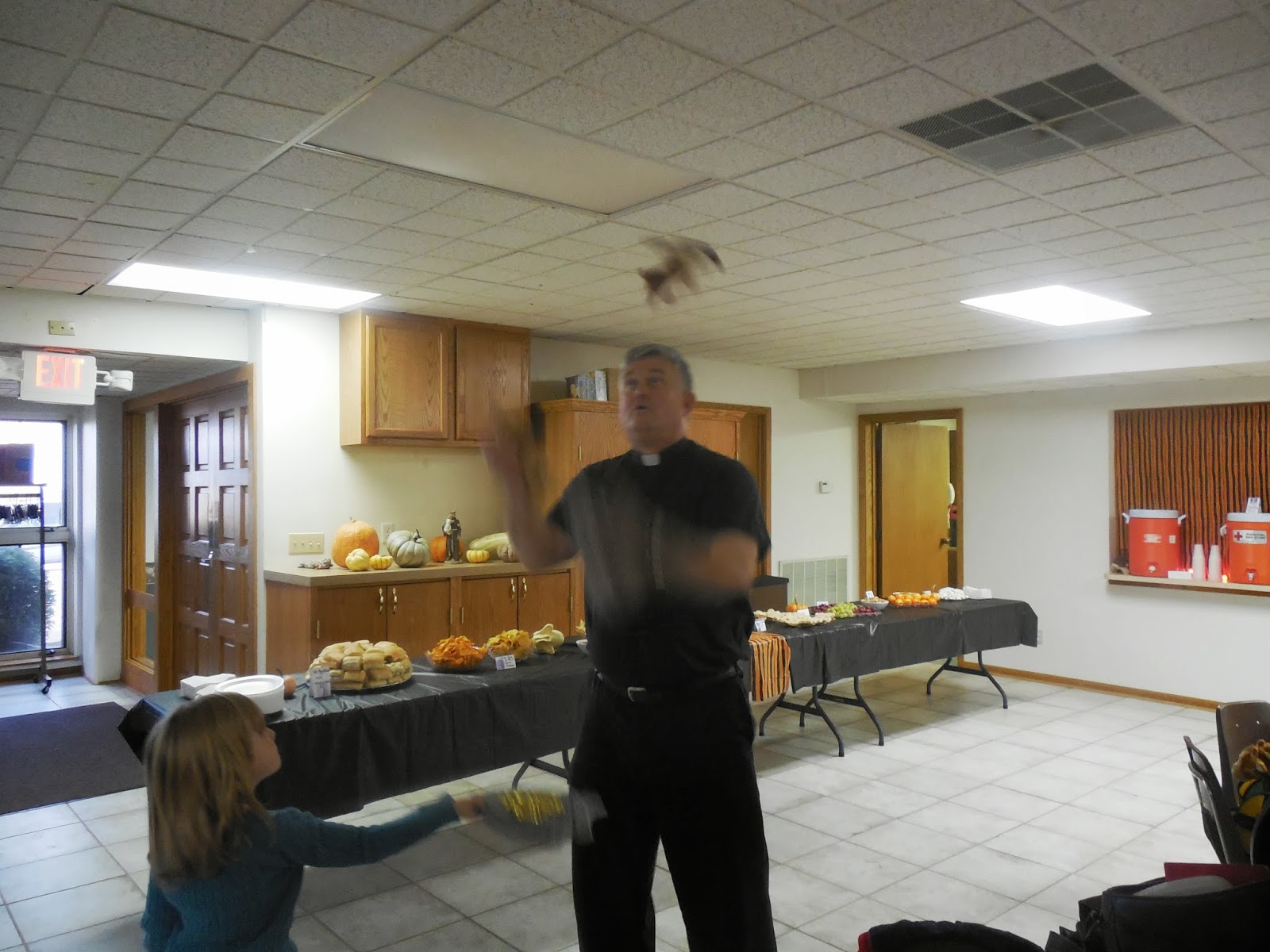 Our priest juggles. Kids love it.