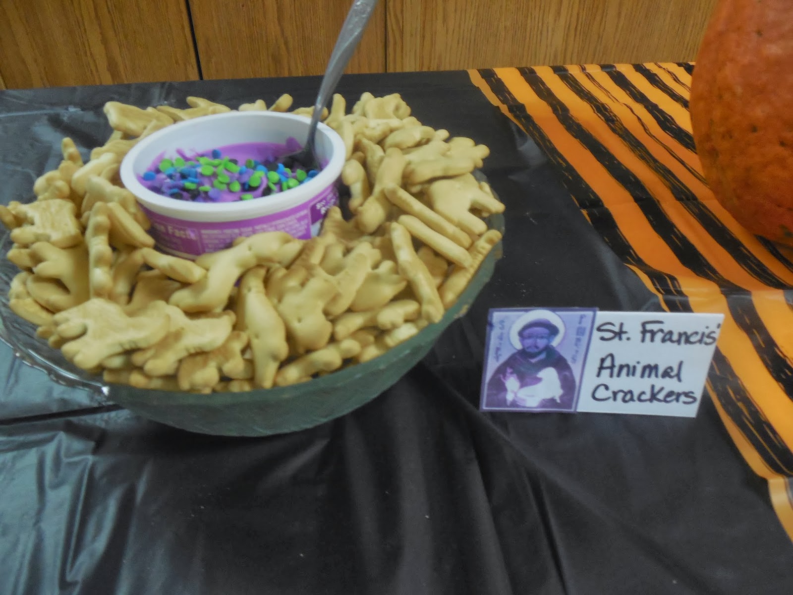 St. Francis' Animal Crackers, served with some purple frosting for a sweet, Halloween-y dip.