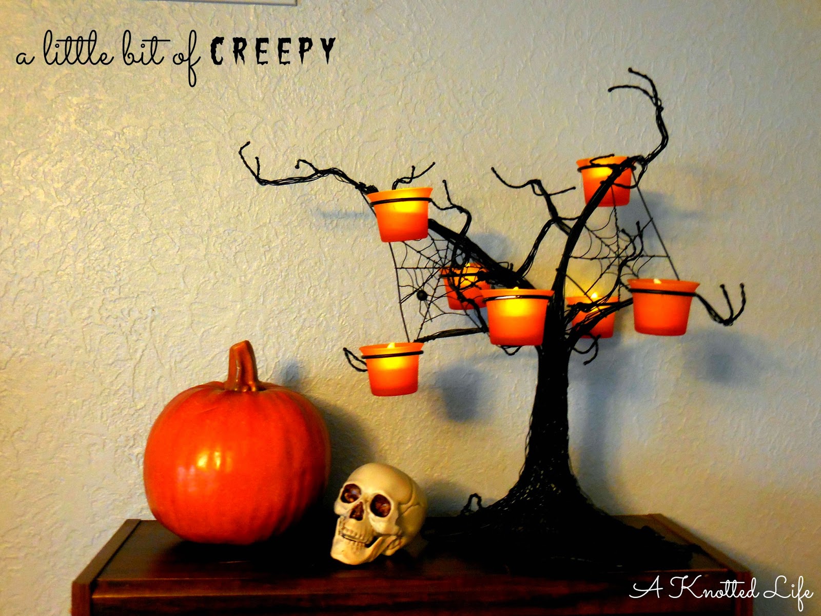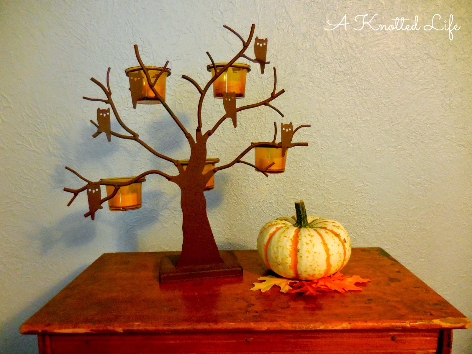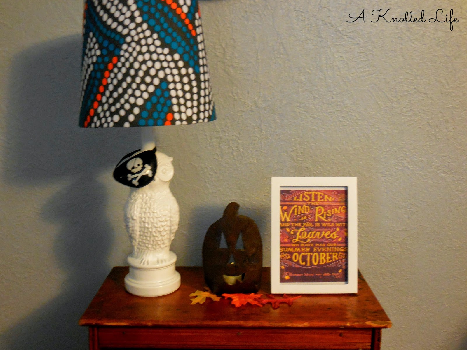 Even the owl lamp is dressing up for Halloween.