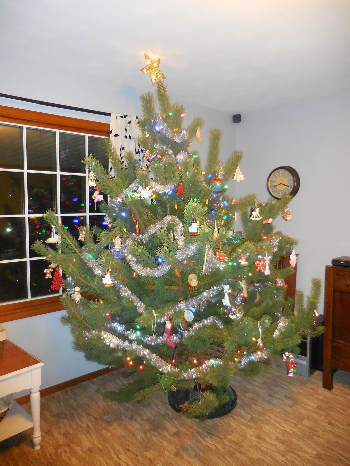It's huge, we don't have enough lights on it, the kids loaded it with tinsel garland, the star is crooked and scrapes the ceiling, and it feels a bit like a tree monster is invading the living room - but I LOVE it.
