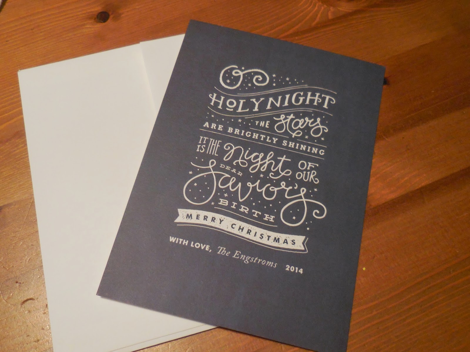 2 - I ended up getting the Christmas cards below from Minted but still bought some at Target because I didn't order enough. The backs of the cards have a sticker I made that reads, "In 2014 Travis bought a car with working a/c; Bonnie presented to 1500+ people in 4 states; L began reading chapter books; Ben taught himself to ride his bike; JF finagled his way into spending lots of time with his grandmas; Resa was adorable; and JP learned to crawl, walk, & climb on the table. We hope your year was just as fun!"