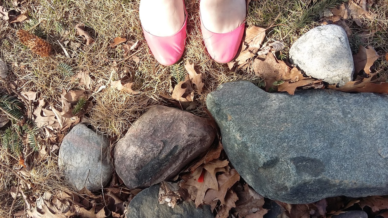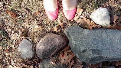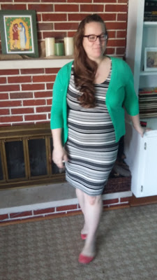 Accessories: green cardi and cute carnation pink Target flats.