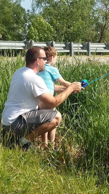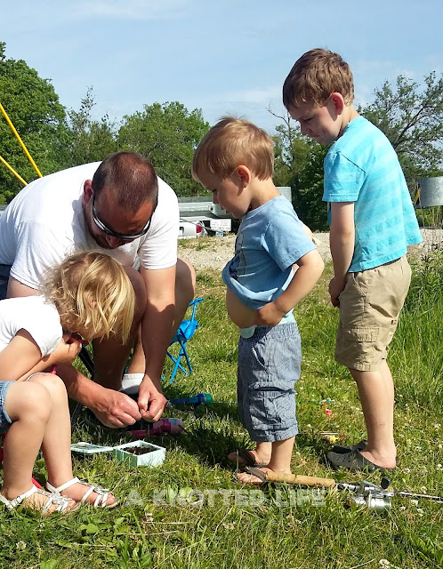 Most of our fishing has been done at a local lake. L and B can bait their hooks, cast, set the hook, reel in, and take the fish off the hook all by themselves. I'm pretty impressed since about all I can do is cast and reel.