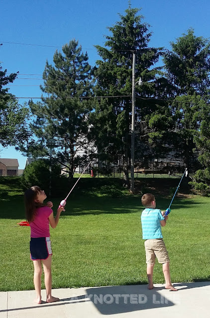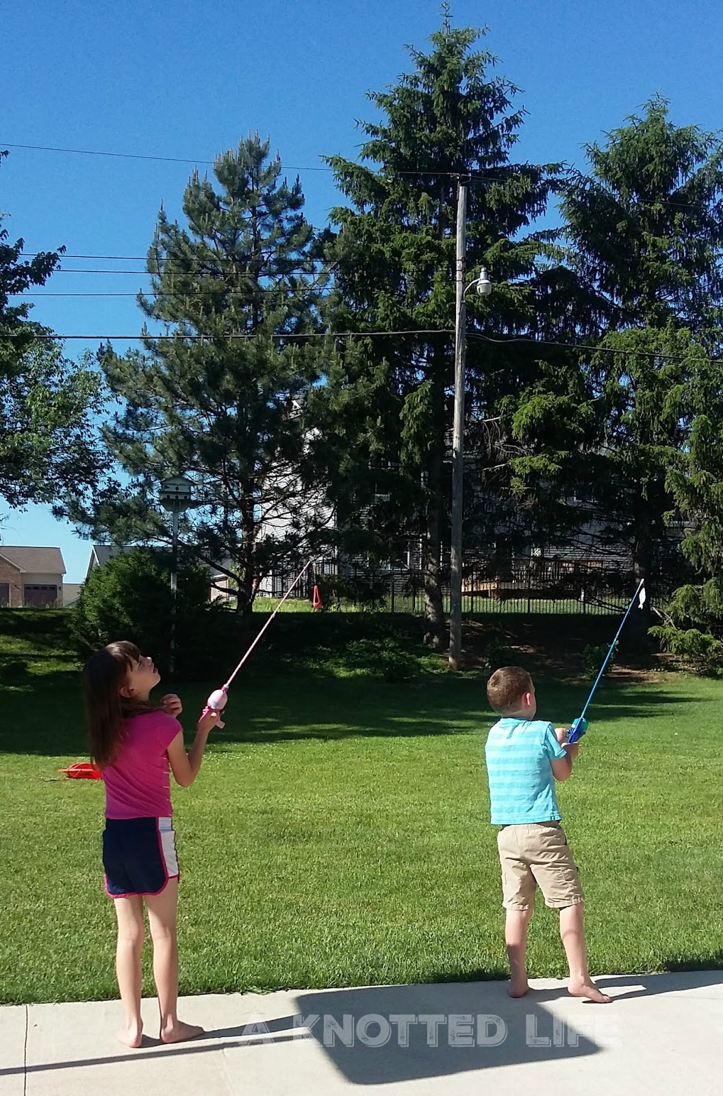 Travis introduced the kids to fishing. L ended up spending some of her birthday money on buying herself a pole and the kids like to practice casting in the backyard.