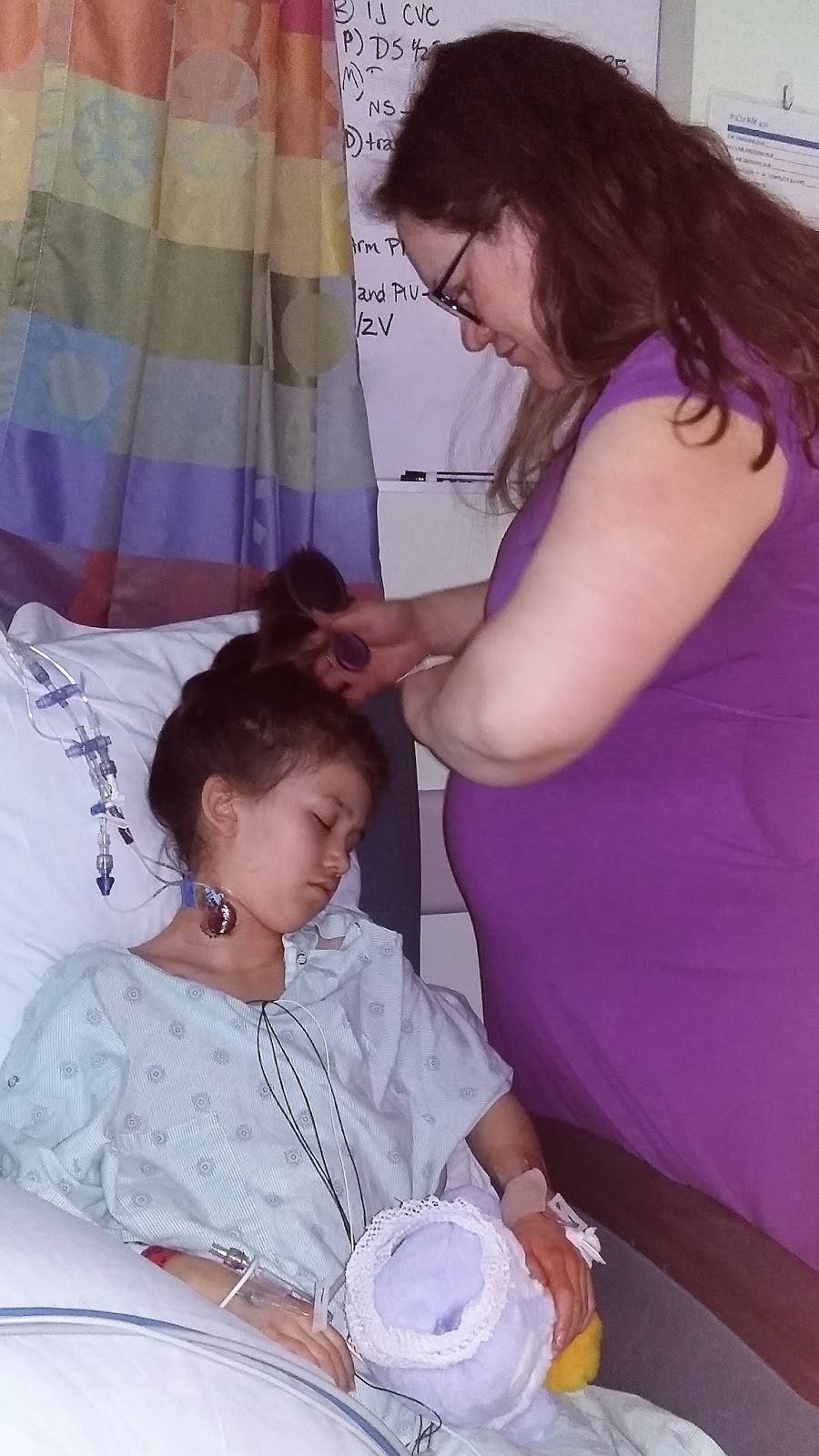 That first day was pretty tough. As she fought to come out of the anesthesia she was in a lot of pain and incredibly confused. At one point she yelled out, "Help me, Daddy!" and it was literally one of the worst moments of our lives because there was nothing we could do to help our baby girl. There was a chest tube to make sure fluid didn't collect around her heart, but it was what caused her the most pain and discomfort. She threw up several times because of it - can you imagine how painful that would be with a broken sternum?!