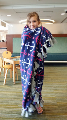 Some of Travis' students had made a special blanket for L when they heard about her surgery and as she waited for her surgery she wrapped herself in it. It was covered with hearts, the symbol of love, and anchors, the symbol of hope. I loved it.