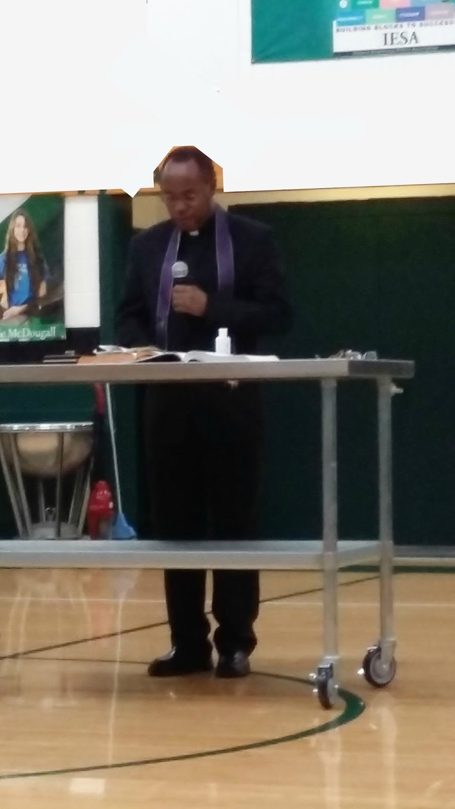 Immediately after Mass our family headed over to the parish school and waited in the gym. Our pastor had arranged with the principal for there to be an all-school assembly immediately following Morning Announcements so that the whole school would be part of the prayers offered during L's reception of the Anointing of the Sick. It was awesome. Our family stood with her on that gymnasium floor as Fr. Julius administered the Sacrament.
