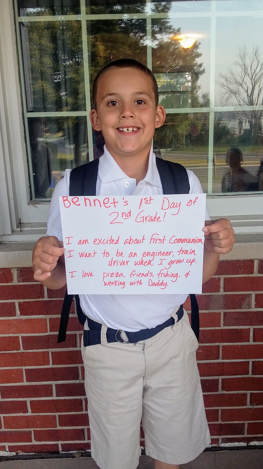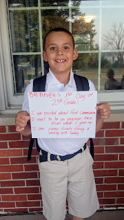 "I am excited about First Communion. I want to an engineer, train driver, when I grow up. I love pizza, friends, fishing, and working with Daddy."