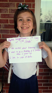 "My favorite part was Math. I want to be a Mom. I love Jesus, strawberry pretzel salad, playing at school, Mommy and Daddy."