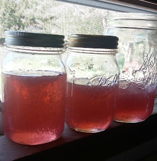 I made some wild violet jelly from violets the kids and I picked from our backyard. It was suuuuper simple and tastes delicious on some buttery toast. Resa also likes it on her PBJs. I used this recipe.