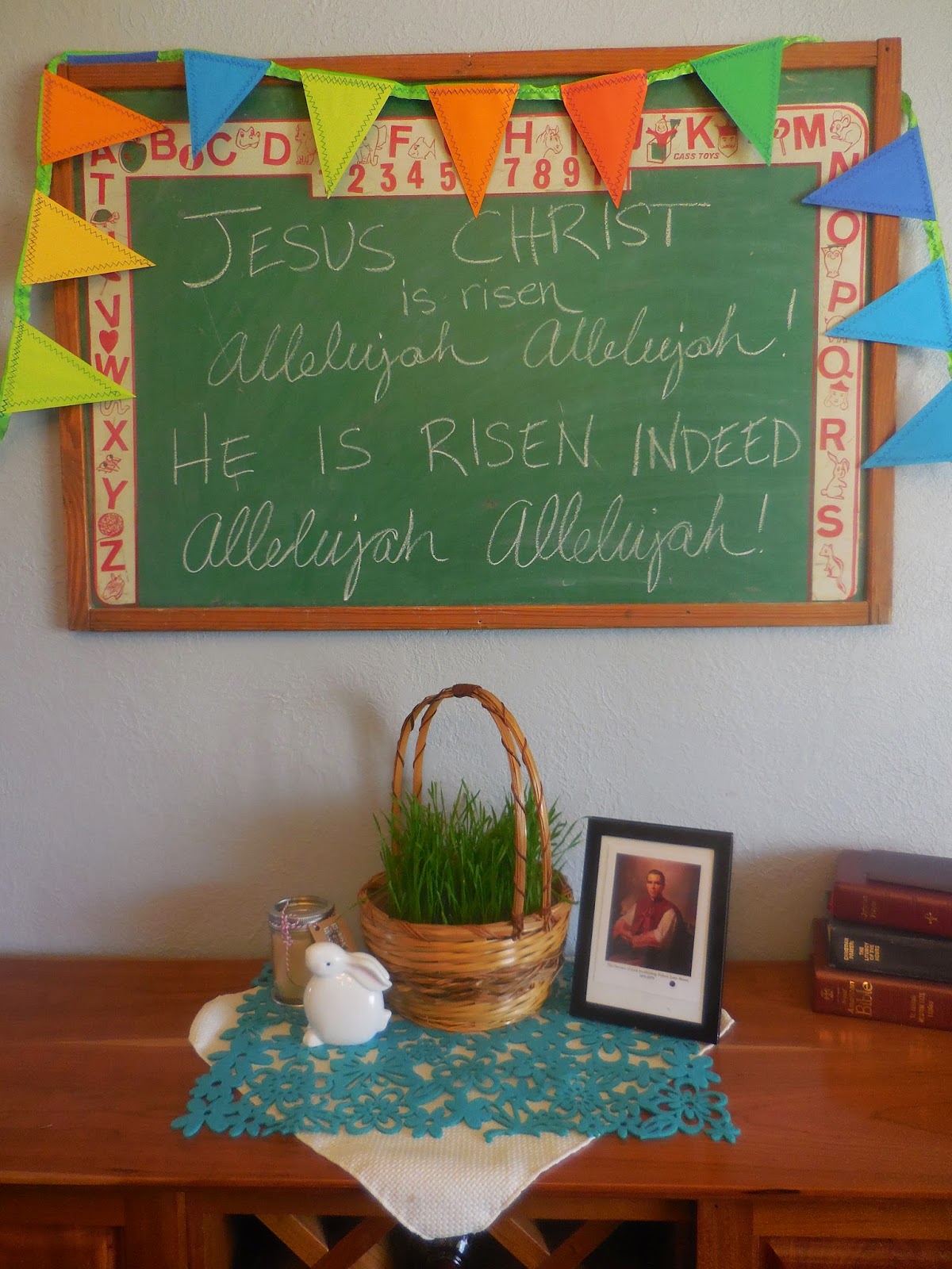 Our Easter mantle looks a little like this: