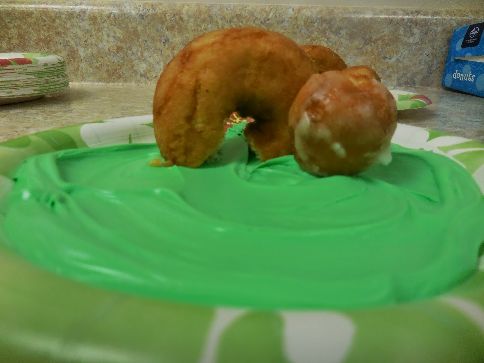 I was able to help with the celebration in Ben's preschool classroom. I made these little tombs out of donuts and donut holes on a plate smothered with green frosting. I walked the kids through Good Friday and they all rolled the "stones" in front of the "tomb." Then we became very quiet as I talked about how sad the whole of creation was on Holy Saturday. Then I had them roll their "stones" away and open up the empty "tomb" because it was Easter Sunday and Jesus was risen!