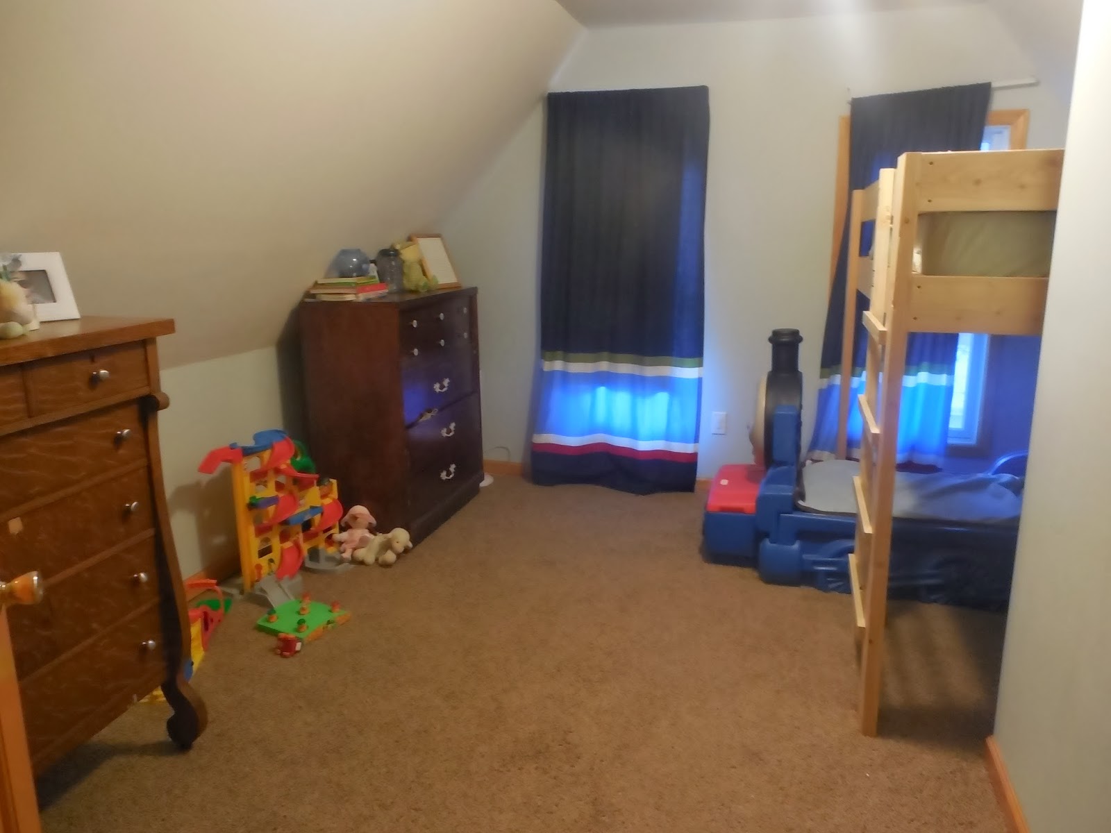 JF has inherited the Thomas bed to sleep on, instead of a crib mattress on the floor, and JP has inherited the crib and will no longer have to sleep in the bouncy chair.