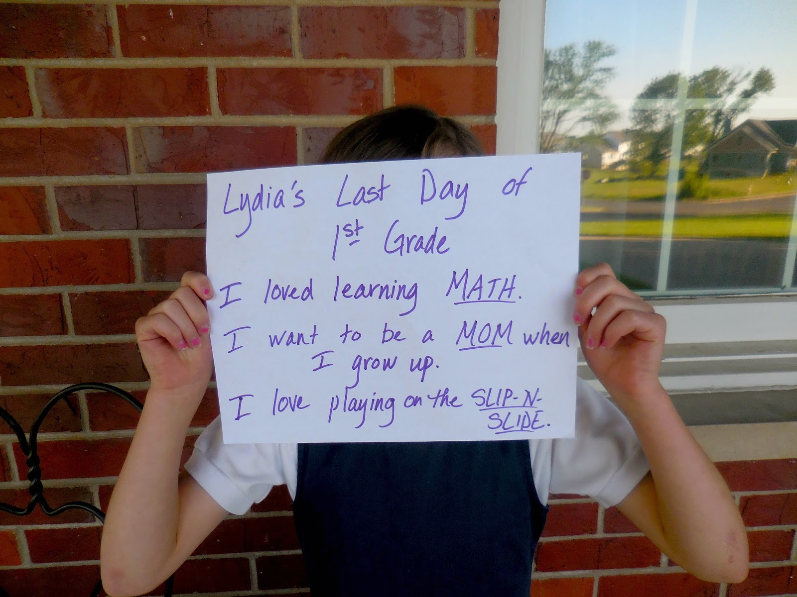 Math was what L was excited to learn at the beginning of the year and I'm so glad she takes after her daddy and enjoys the thrill of numbers. (That actually wasn't sarcastic.) In August she wanted to be a veterinarian when she grew up, which was heavily influenced by a visit from Resa's godmother who is a vet, and she liked flowers. Now she likes playing on the slip-n-slide.