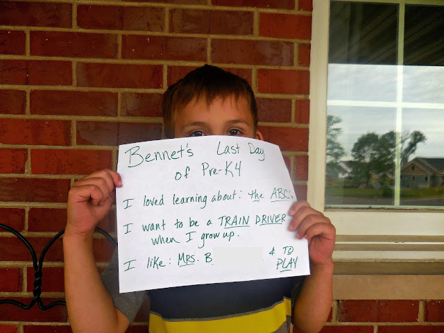 At the beginning of the year Ben wanted to learn how to make boats. Sadly that didn't happen for him this year but he did learn his ABCs, as in how to write, identify, sign, and say their sounds. I had at least taught him the song. He also wanted to be a farmer when he grew up and he said he likes trains.JF's last day came next.